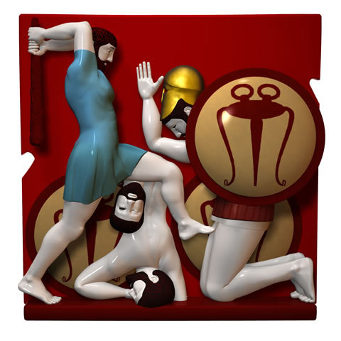 “…it seemed to him to be much better .. to fight by stealth .. against the mighty man; .. (crouching) on one side he devised for him .. bitter destruction; and he [Geryon] kept his shield in front of (his chest, but the other struck his brow with a stone); and from his head (immediately with a great clatter) fell the helmet with its horse-hair plume; (and it remained there) on the ground ..